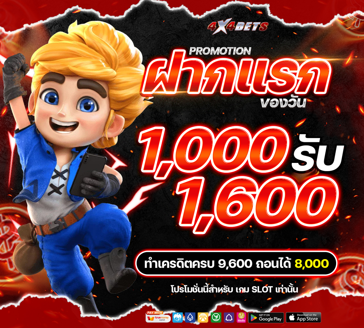 ฝากแรกของวัน 1,000 รับ 1,600
