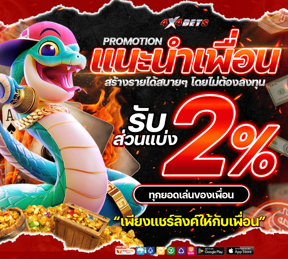📲แนะนำเพื่อนมาเล่นกับเรา 4x4bets ได้เงินนะรู้ยัง?