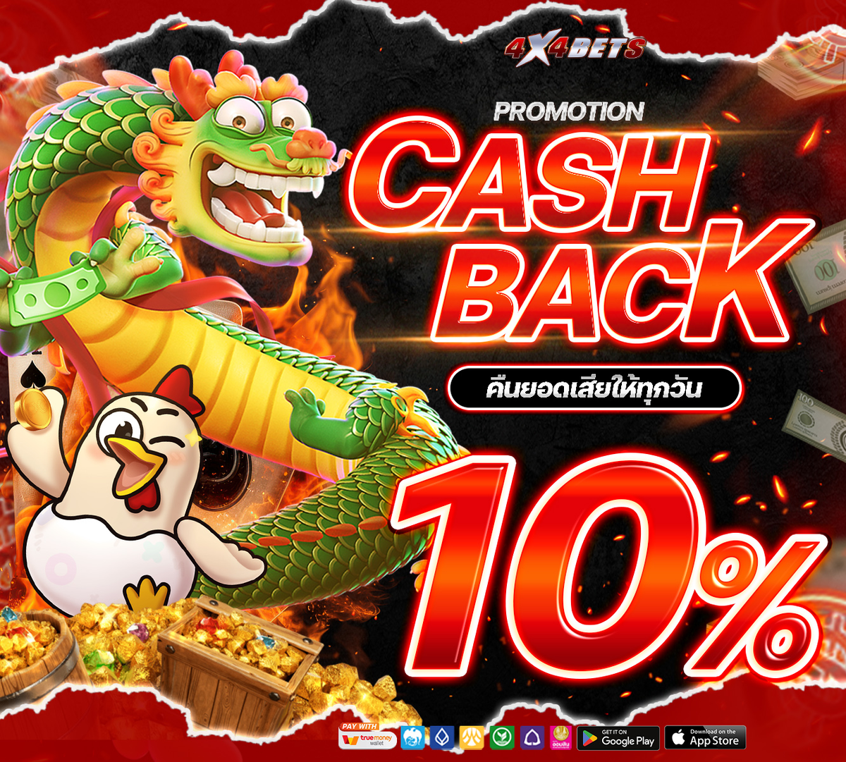4x4bets คืนยอดเสีย 10% ทุกวัน มารับไป!!!