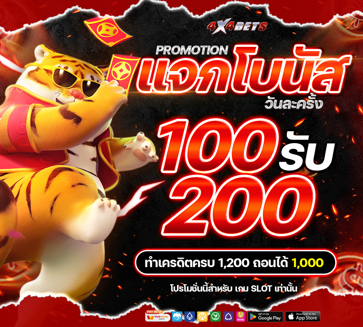 แจกโบนัสวันละครั้ง ฝาก 100 รับ 200