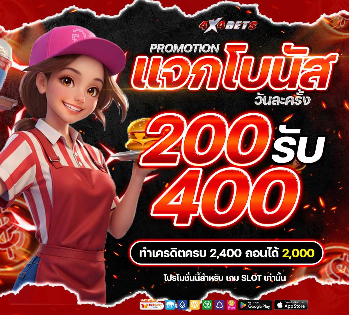 แจกโบนัสวันละครั้ง ฝาก 200 รับ 400