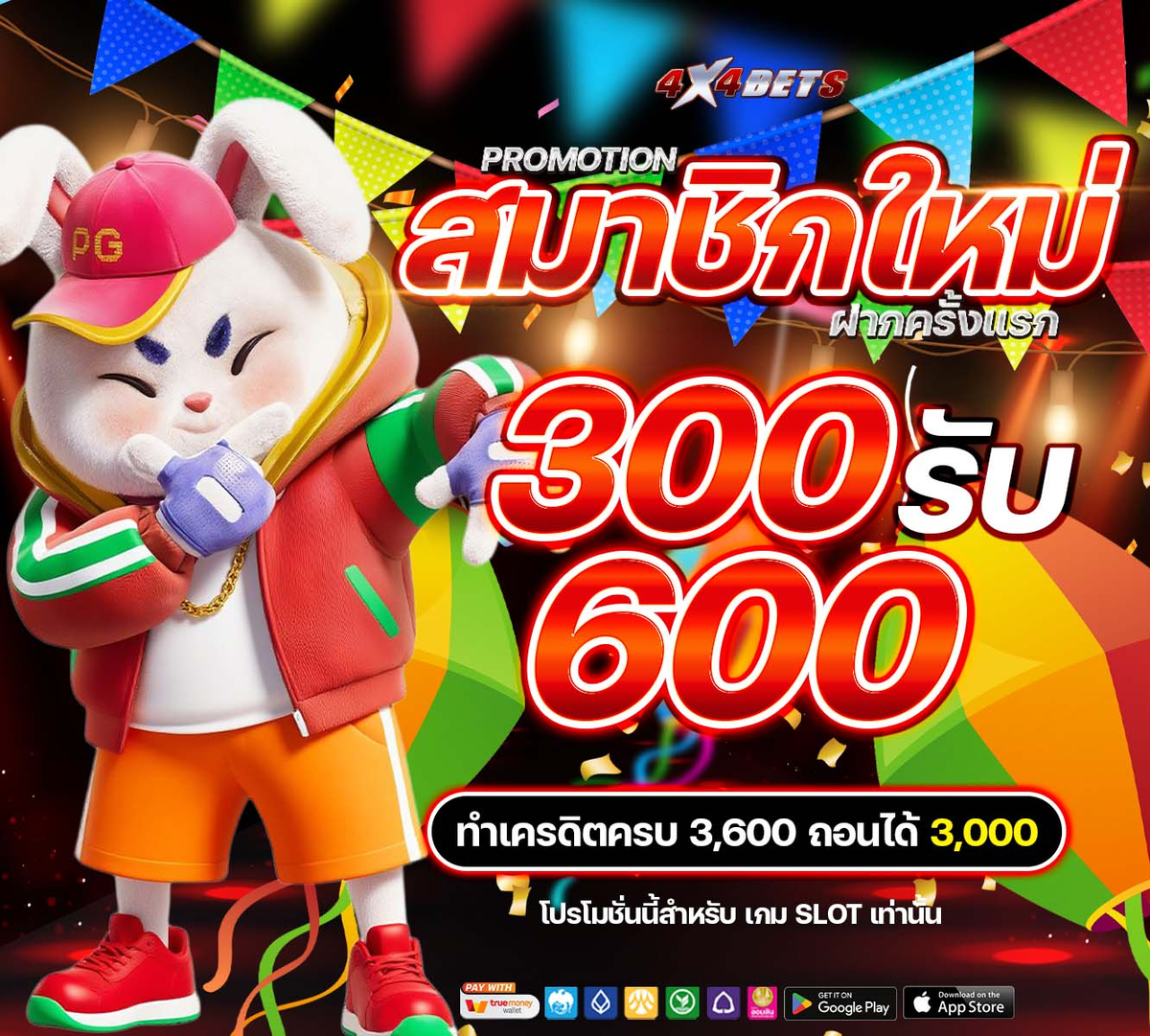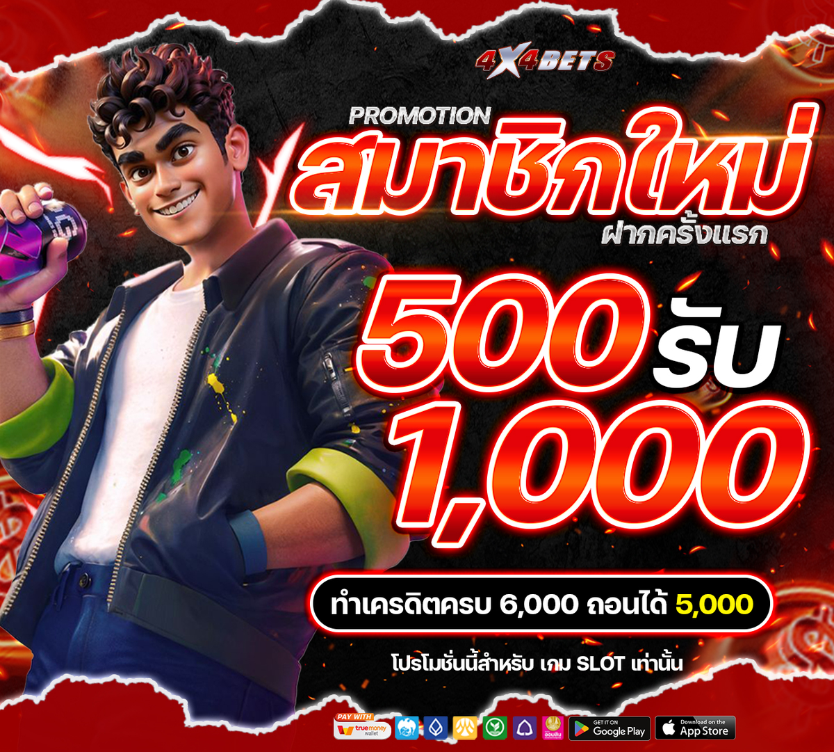 - เป็นสมาชิกใหม่ของ 4x4bets เท่านั้น