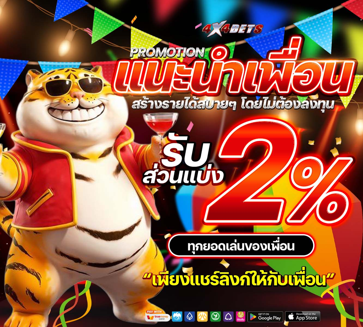 แนะนำเพื่อนมาเล่นกับเรา 4x4bets รับส่วนแบ่ง 2%