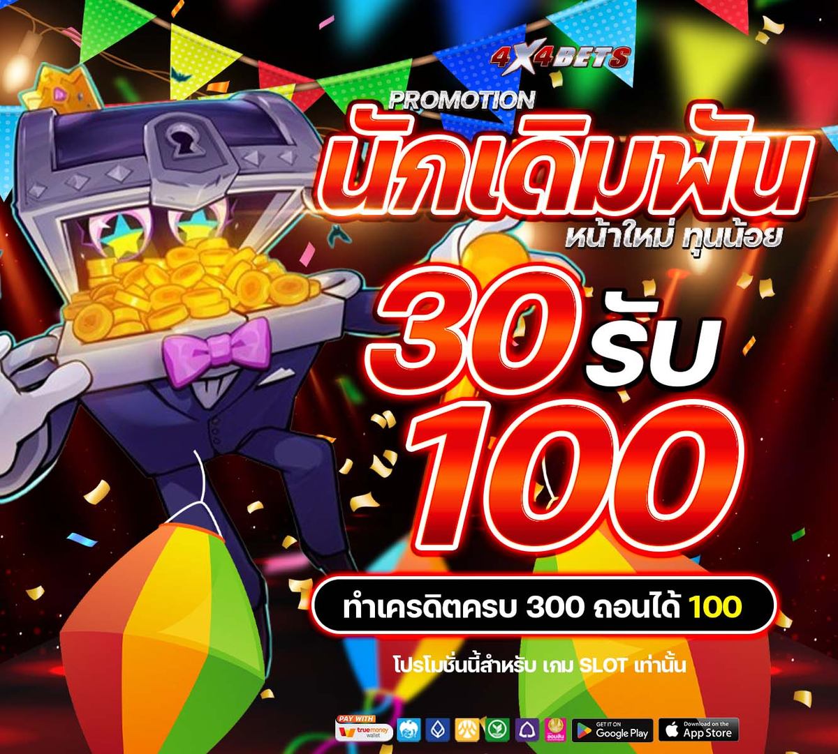 4x4bets จัดเต็มให้นักเดิมพันหน้าใหม่ทุนน้อย ฝาก 30 รับ 100
